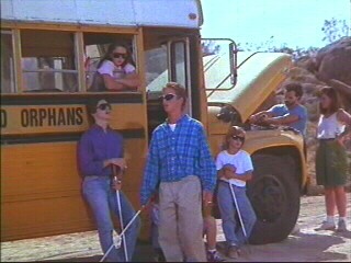 sich dann doch wiederwillig mit den Einwohnern zusammen - der Bus der Blindenschule