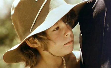 schwarz gekleideter Mann (El Topo) und ein nacktes Kind (sein