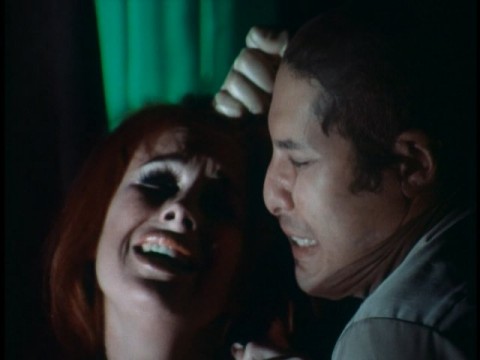 und mißhandelt. Er jagd die Frau durch ihre Wohnung und spielt ein