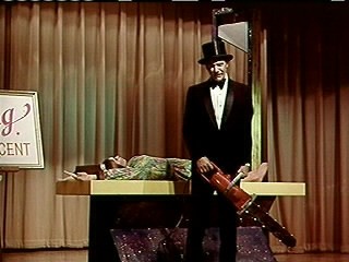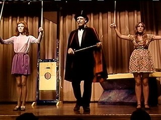 der Show auf und hypnotisiert das Publikum, die Mitarbeiter des